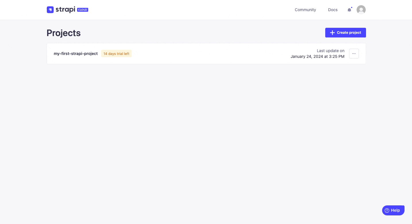 You will see the Strapi Cloud project we've just created, my-strapi-project