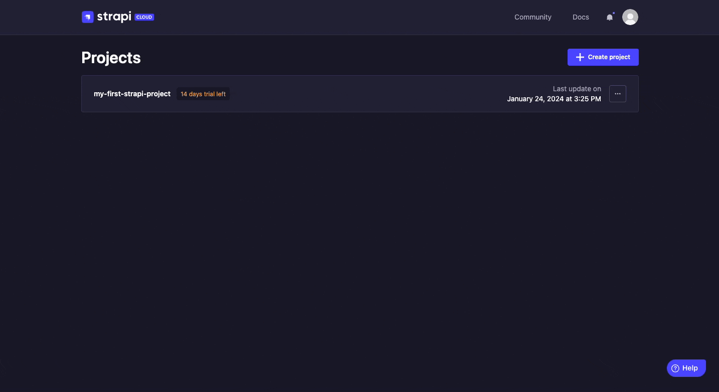 Now your project is hosted on Strapi Cloud and accessible online. Enjoy your 14-day free Strapi Cloud trial! You can learn more about Strapi Cloud by reading its dedicated documentation or proceed to part D to log in into your online Strapi project and add your first data from there.